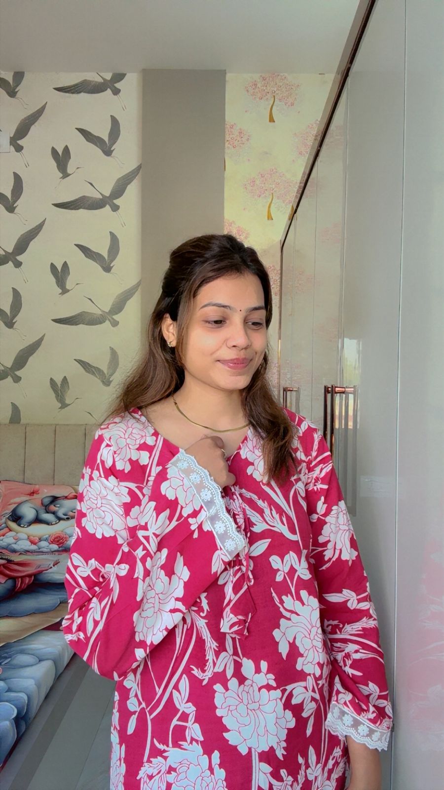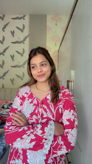 Add effortless charm to your everyday wardrobe with this elegant pink floral short kurti. Crafted in soft, breathable cotton, this piece features delicate white floral prints, lace detailing on the sleeves, and a flattering relaxed fit for all-day comfort. Perfect for casual outings, workwear, or daily ethnic styling, this kurti pairs beautifully with jeans, pants, or palazzos.